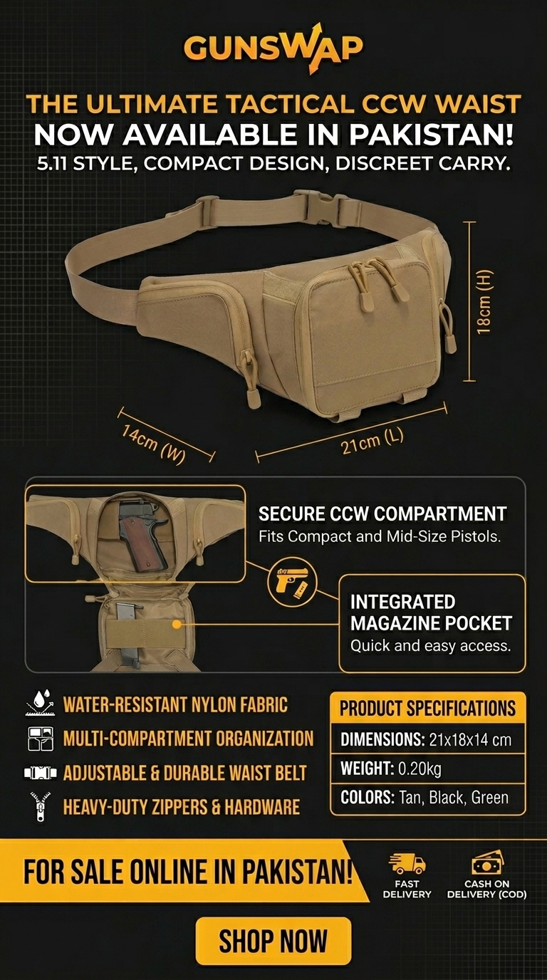 This compact tactical waist bag is designed for secure everyday carry, fast access, and practical organization. The 5.11 Style Compact CCW Tactical Pistol Waist Bag offers a smart carry solution for users who want a reliable bag for essential gear, concealed carry setup, and daily outdoor or tactical use in Pakistan.