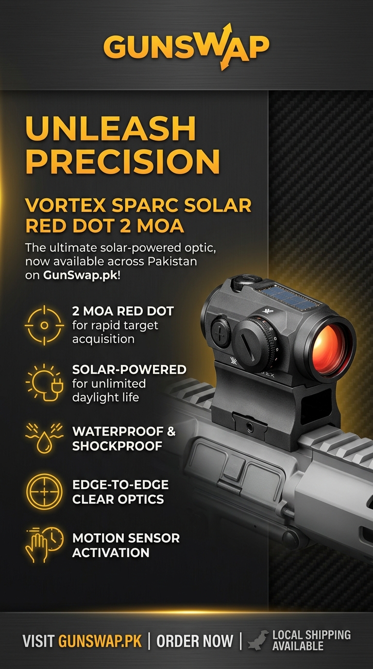 Upgrade your rifle with the Vortex SPARC Solar Red Dot 2 MOA, a cutting-edge reflex optic designed to blend durability, clarity, and long battery life for fast target acquisition. With innovative solar technology and a crisp 2 MOA reticle, this red dot sight is perfect for tactical shooters, hunters, and competitive marksmen alike.